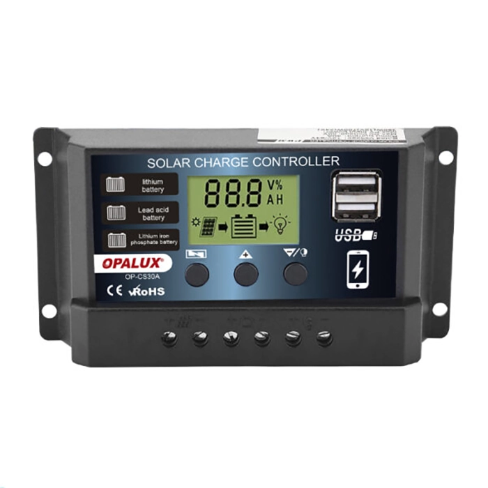 CONTROLADOR SOLAR DE CARGA INTELIGENTE “OPALUX” 30A 12-24VDC