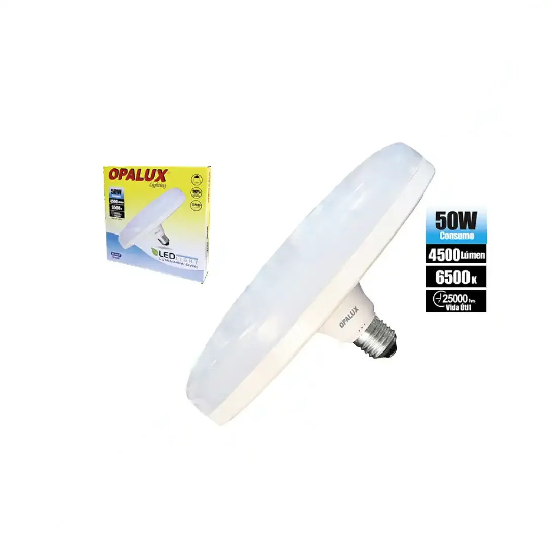 FOCO UFO E27 50W OPALUX 4500LM 6500K 25000HRS LUZ BLANCA 110V-240V