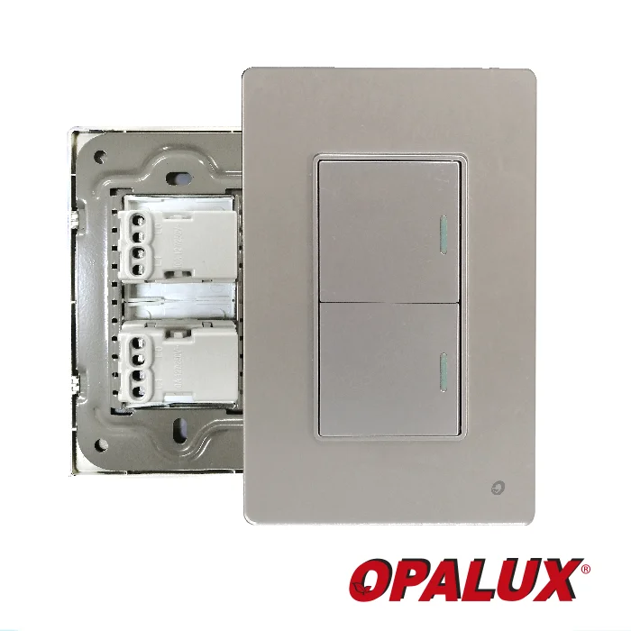 OP-AT-02SLV Interruptor doble dado 3.5cm, Medidas: Altura 12 cm x Ancho7.5 cm 127/250V 10A / 10 x Cj – Master 200
