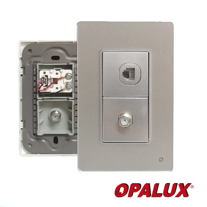 OP-AT-SP78SLV Placa mixta doble telefono + coaxial, 2 dados 3.5 cm Medidas: Altura 12 cm x Ancho7.5 cm 10 x Cj – Master 200