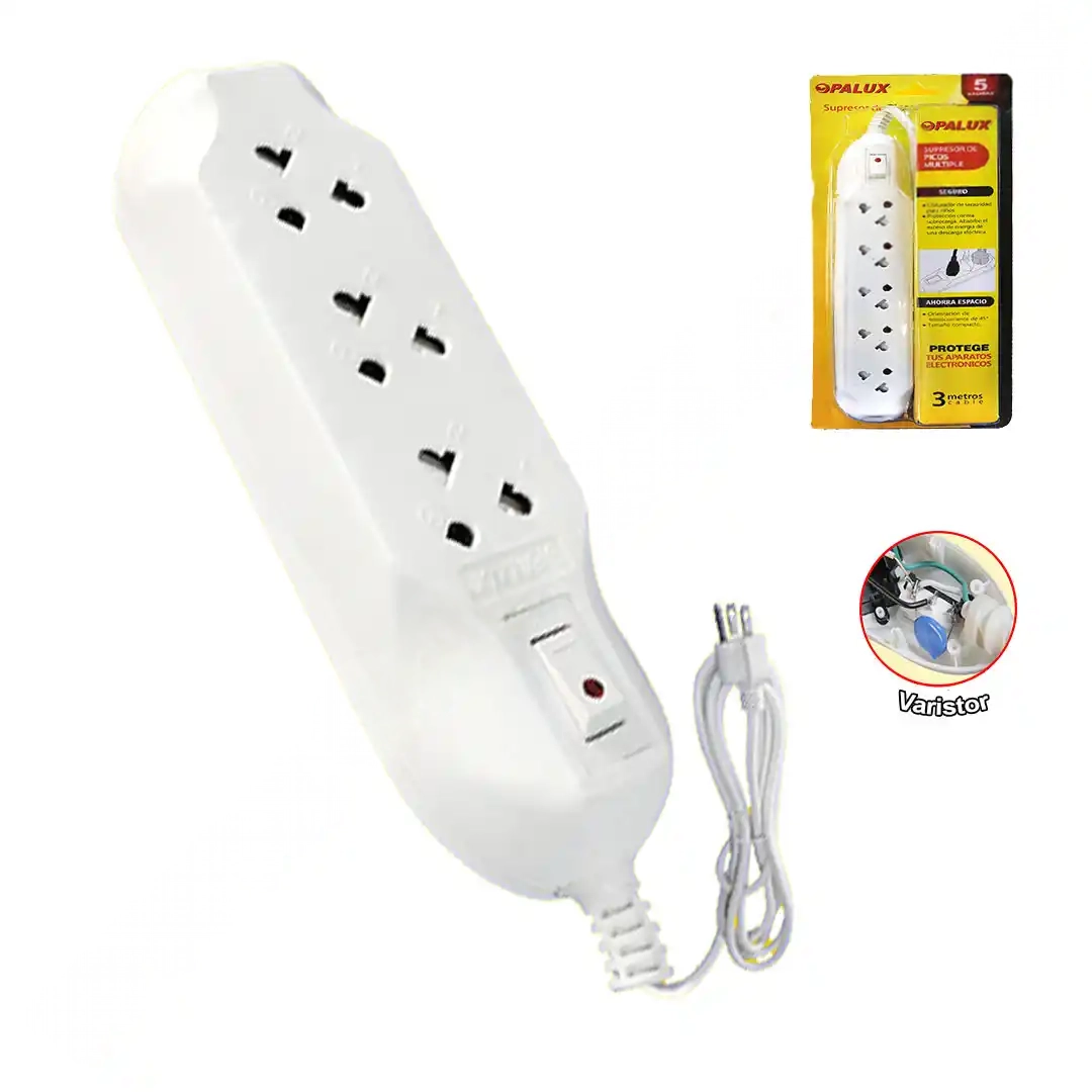 Supresor de pico 3 tomas universales 10AMP con proteccion para niños con toma a tierra 1 switch ON/OFF cable 3mts “OPALUX” color blanco