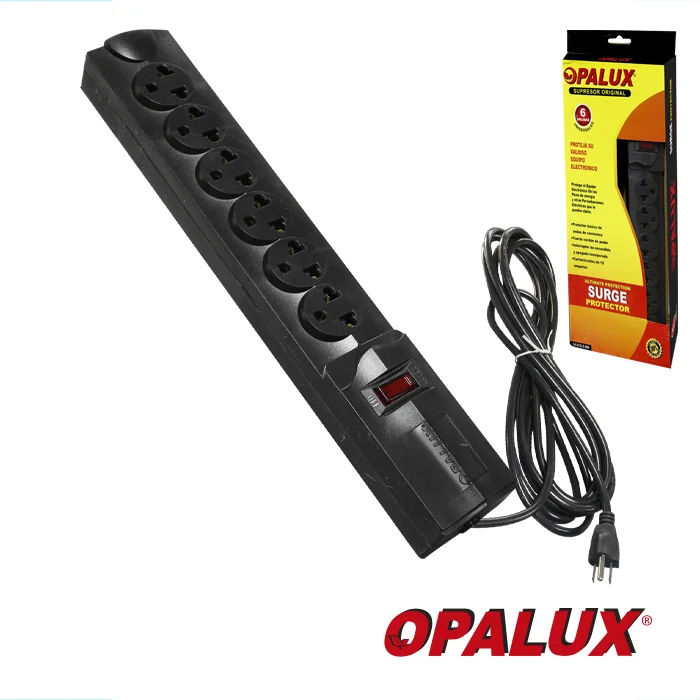 SUPRESOR DE PICO “OPALUX” 90 cms 6TOMAS UNIVERSALES C/SWICTH RESET HIGH QUALITY 14 AWG