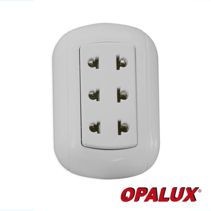 TOMACORRIENTE BLANCO “OPALUX” DOBLE UNIVERSAL SUPERFICIAL 2P+T 10AMP CJX10, MASTER 200